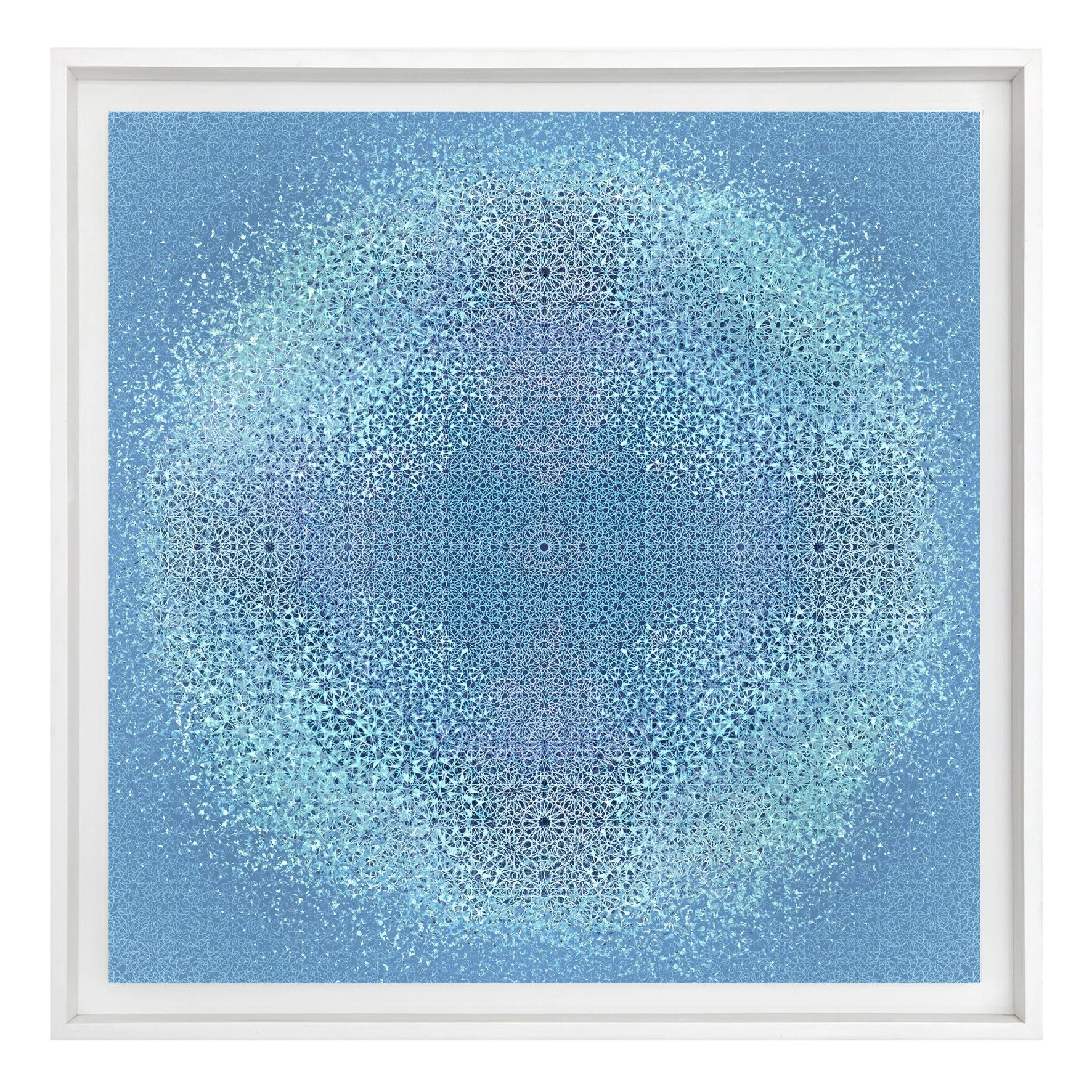 Fondées sur l’étoile à quatorze côtés, élaborée et déclinée de multiples manières, ces images hautement interprétables et riches en associations se construisent par strates successives, évoquant tour à tour des paysages, des explosions ou encore des tapisseries suspendues qui semblent s’élever, scintiller et se dissoudre sous le regard.