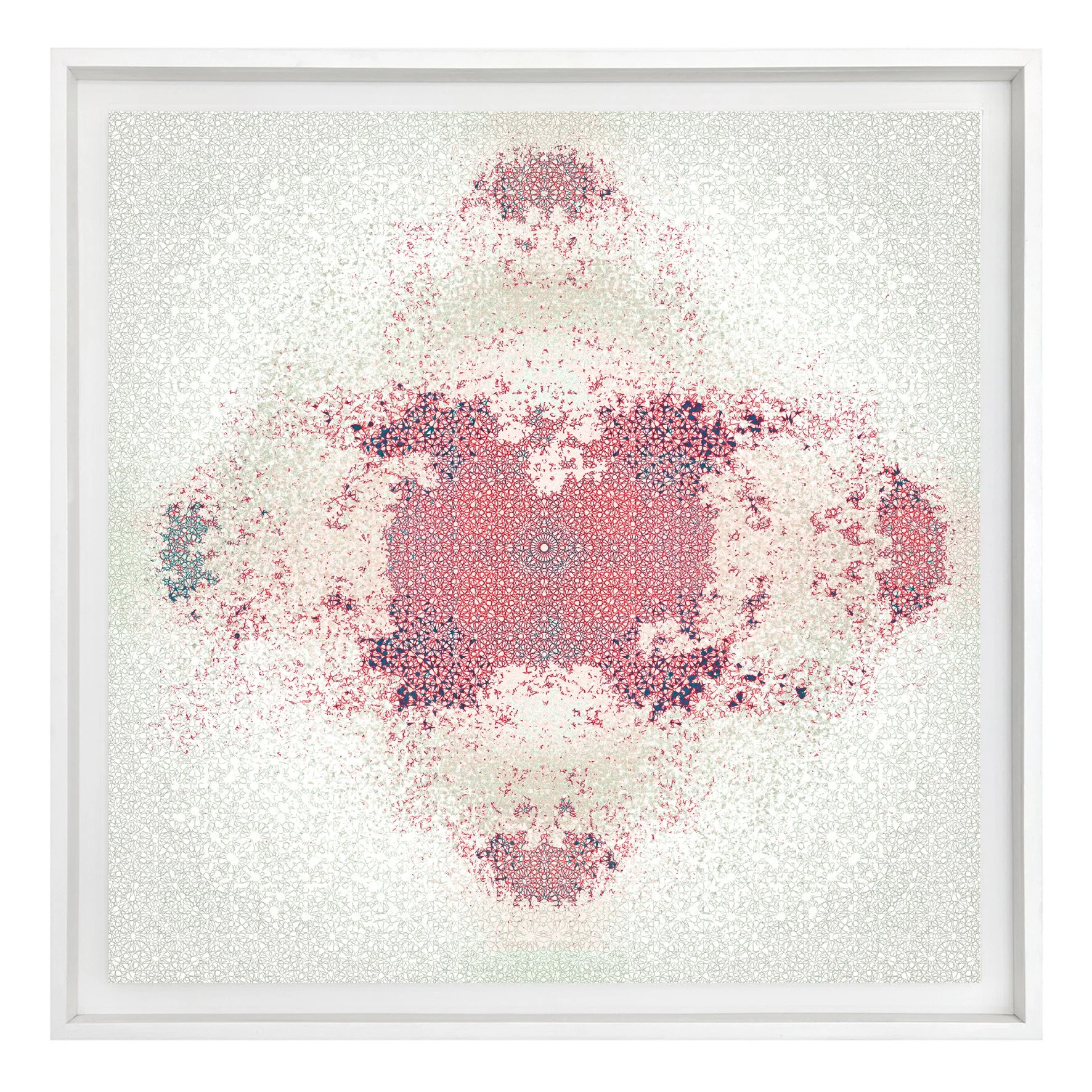 The subtle lack of symmetry within what is otherwise a symmetrical tradition introduces a source of optical tension, playfully captivating the viewer’s gaze as it moves across the image, noticing and processing slight geometric inconsistencies while rewarding it with a sensual and richly textured viewing experience.