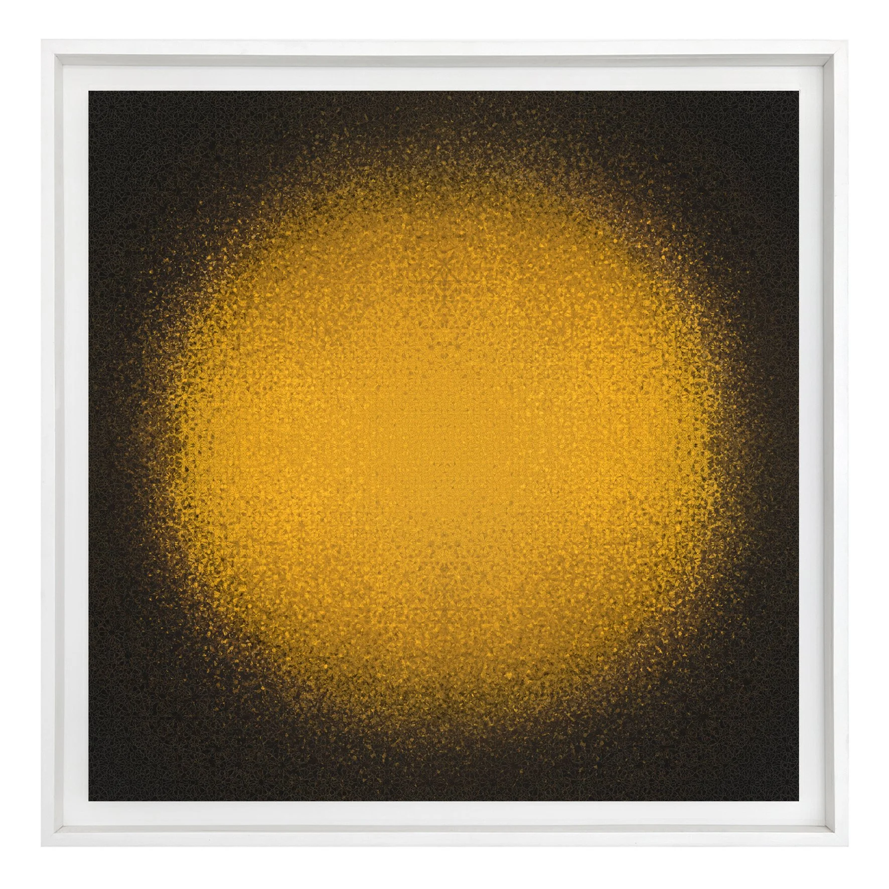 Déclinées dans une palette de couleurs allant de l’or au noir, au blanc et au bleu, les images et les éléments qui les composent reflètent la nature progressive et modulaire de la construction d’une image — ou de la matière elle-même — que ce soit sous la forme d’un point, d’un pixel, d’un carreau ou d’un atome.